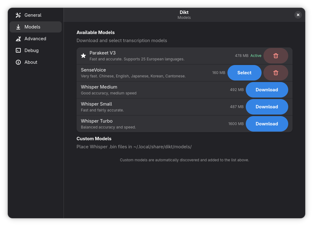 Parakeet, SenseVoice, Whisper - choose your engine.